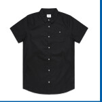 Short sleeve button up shirt, button close chest pocket, clear buttons